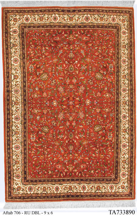 AFTAB 706 T.C. MEDAL Traditional Persian KASHAN RUST - DK BLUE INDIA 100% Pure Wool Pile